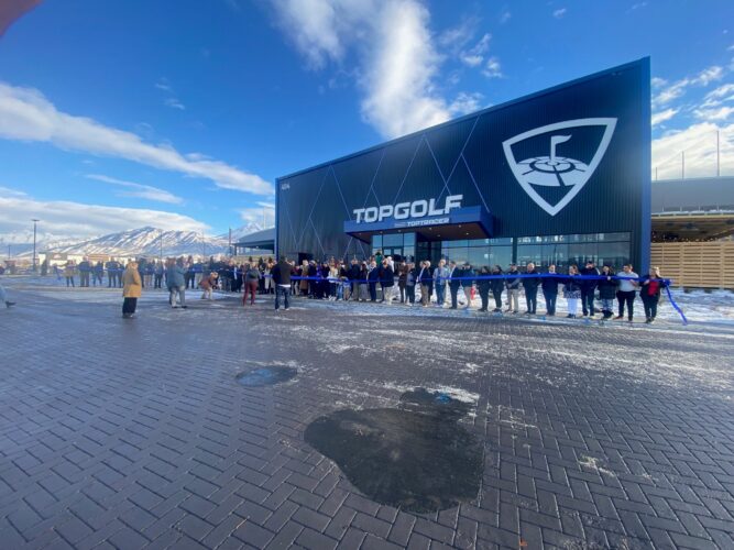 It may have been cold outside on Friday for the 100-foot-long ribbon-cutting for Topgolf in Vineyard, but the inside was warm and inviting.