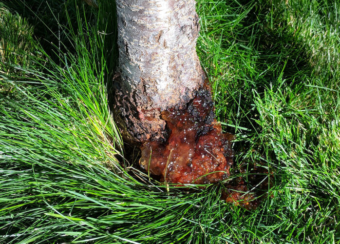 We definitely have peach tree borers in our nectarine tree. The trunk is pretty much encircled by the sap oozing just above the ground level. What insecticide should I apply to the trunk and saturate the ground with? When is the best time to do so? When I pruned this year, there were at least ...