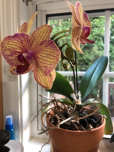 We have a happy little orchid, which appears extremely healthy and active. The leaves are vibrant and the spikes are prolific as you can see. We water fertilizer about every two weeks. The problem is some of these spikes have been growing for the best part of a year or more and we don’t see ...
