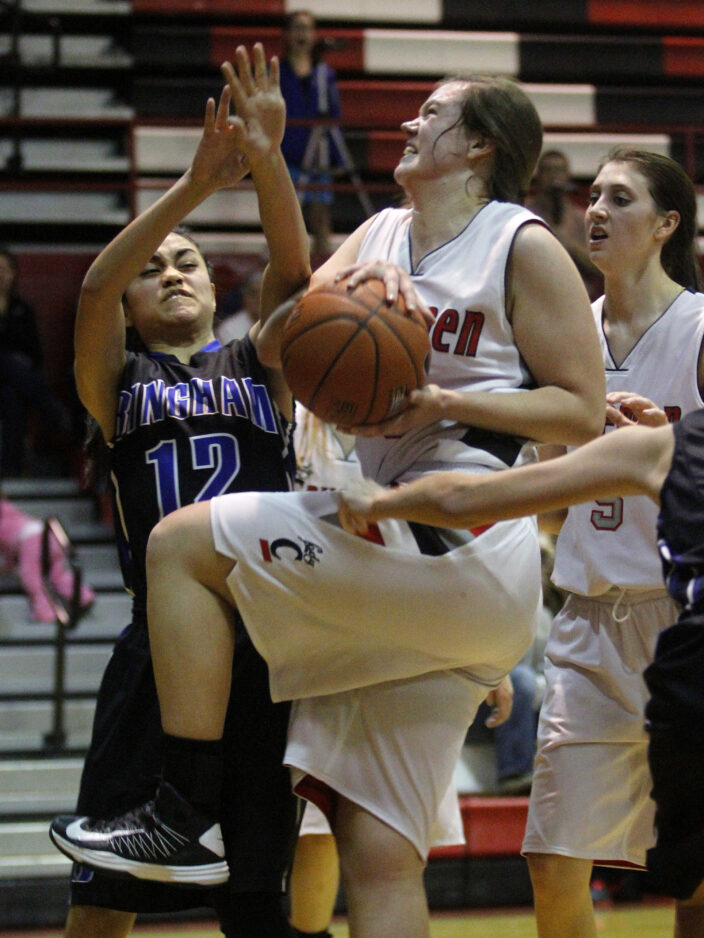 Then it was senior guard Cassidy Fraughton grabbing a defensive board to take possession back once again. Bergeson’s offensive rebound went out to senior guard Megan Eliason for a long deuce and the nice lead.