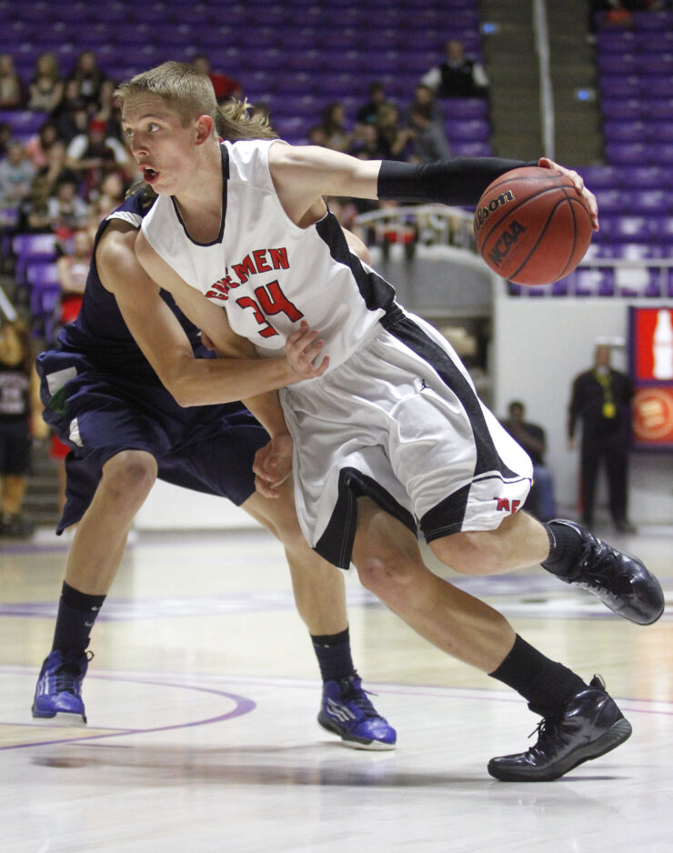 Taylor Rawson (34) of American Fork drives to the basket during the 5A quarterfinal game against Syracuse at the Dee Events Center in Ogden on Wednesday, February 27, 2013. American Fork won the game. SARAH WEISER/Daily Herald