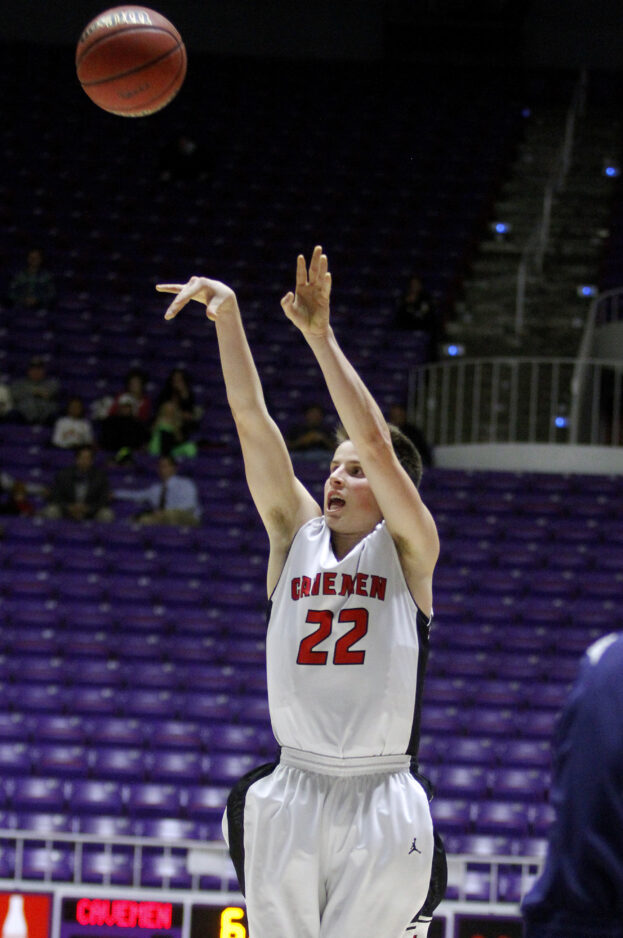 Kyle Line (22) of American Fork shoots during the 5A quarterfinal game between Syracuse and American Fork at the Dee Events Center in Ogden on Wednesday, February 27, 2013. American Fork won the game. SARAH WEISER/Daily Herald