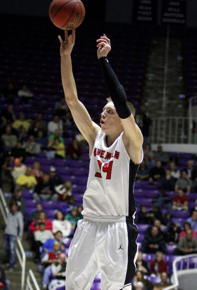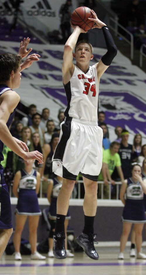 Taylor Rawson (34) of American Fork shoots during the 5A quarterfinal game against Syracuse at the Dee Events Center in Ogden on Wednesday, February 27, 2013. American Fork won the game. SARAH WEISER/Daily Herald