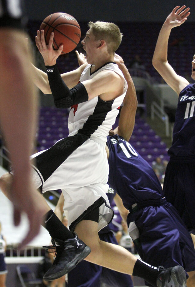 Ryan Andrus (23) of American Fork goes up for a shot during the 5A quarterfinal game against Syracuse at the Dee Events Center in Ogden on Wednesday, February 27, 2013. American Fork won the game. SARAH WEISER/Daily Herald