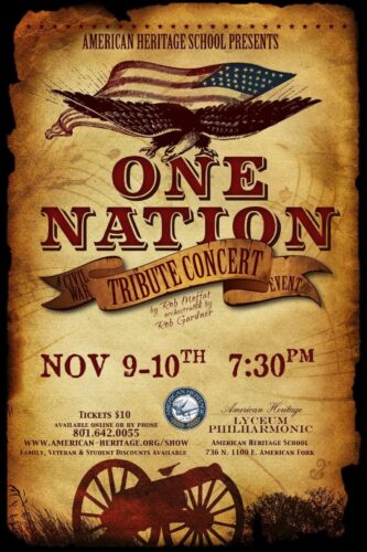 On November 9 and 10, American Fork's American Heritage School will present the world premiere of “One Nation”, a musical tribute to Civil War Veterans commemorating the 150th anniversary of the sacrifices made by those who fought to preserve this country a nation. This newly commissioned ...