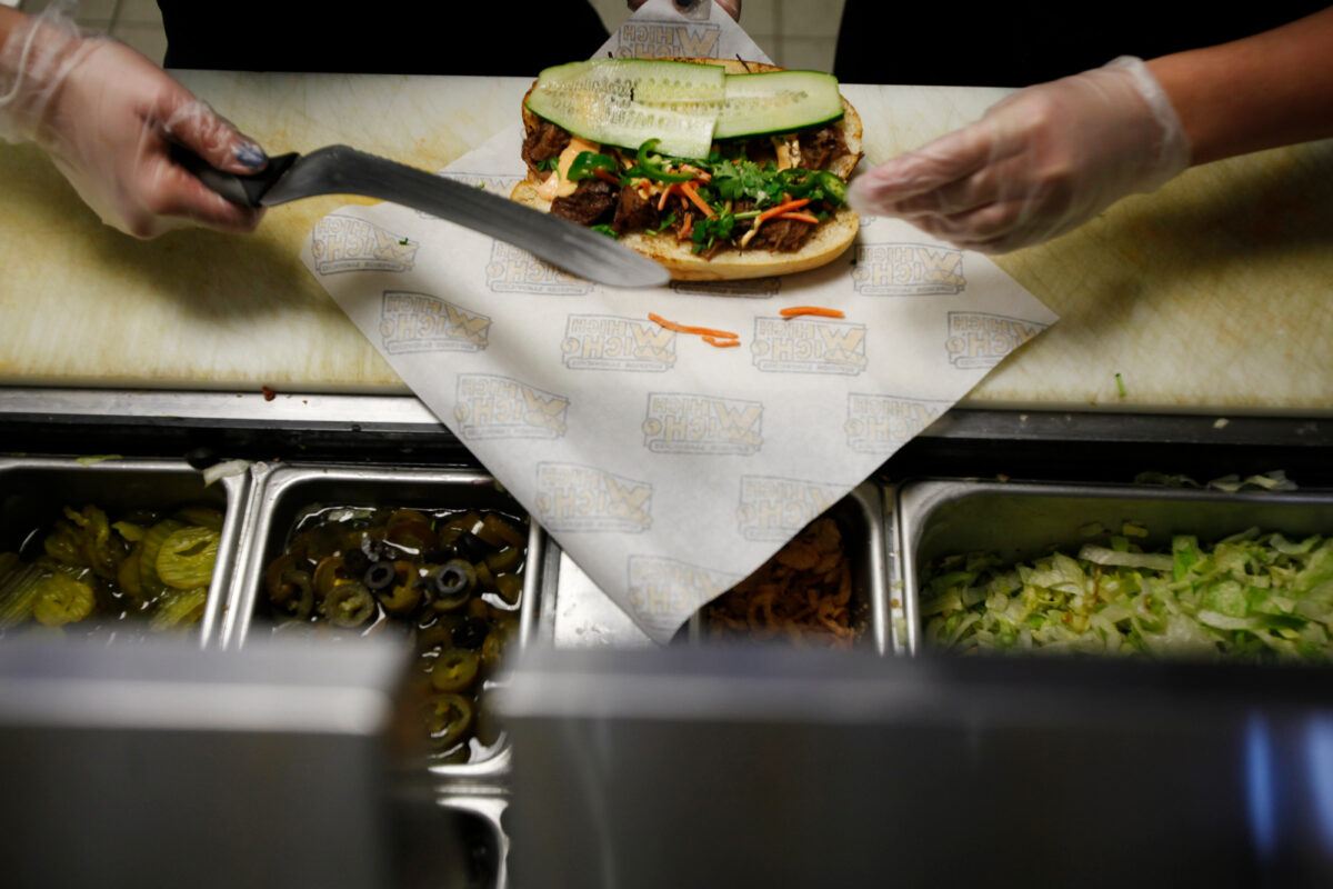 Vickers said customization is one of Which Wich’s token characteristics, with 50 different types of sandwiches and 60 topping choices. Plus, the store puts a twist on ordering: customers pick up a paper bag and choose the type of sandwich, veggies, condiment spreads and cheese by writing on the bag. “Wich” makers then make the sandwich to order and put it in the bag.