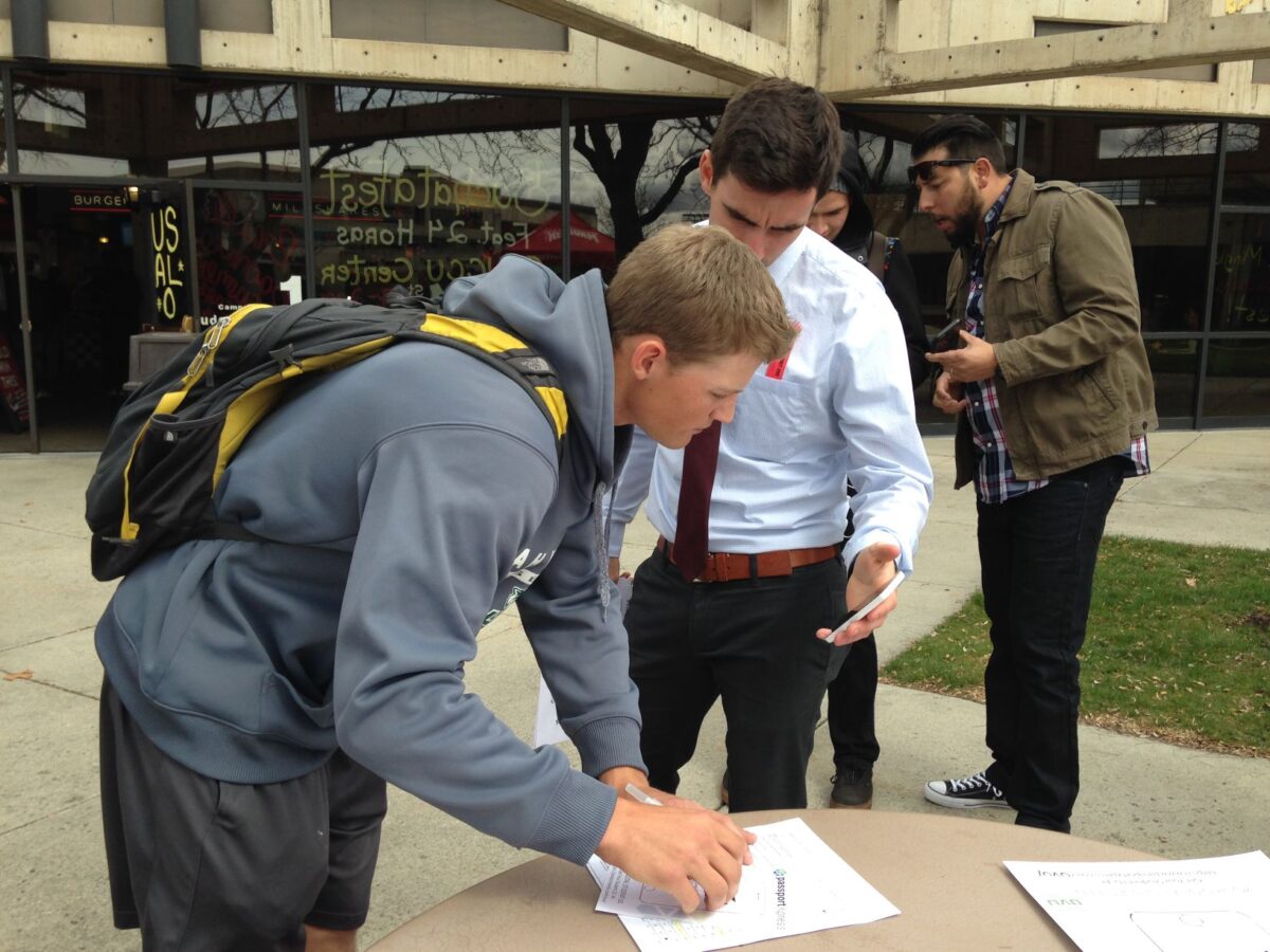 UVU students Santiago Gallardo and Zach Zufelt launched their business, PassportXpress Wednesday, and said they could not be where they are now without the institute. Sitting on his balcony in Saratoga Springs, Gallardo had the idea for the business about nine months ago, which is an app and platform that puts all the usability of a student ID card directly onto a smartphone. In addition to checking out books, purchasing meals and other campus services, or riding the bus to and from school, the app allows students to interface directly with the college.