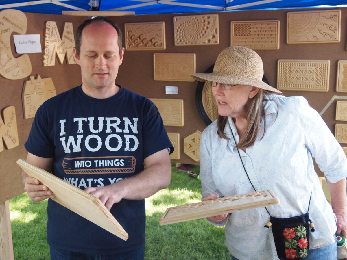 Mapleton resident Karl Hale is one of those hopeful vendors. He and his daughter, Minnie, manned his Hale Kinetics booth Saturday at the Provo Farmers Market, with the goal to sell his carved wooden plaques. Hale is an artist at heart — one of his pieces is currently on display in the Springville Art Museum’s Spring Salon — but he’s a businessman in mind.