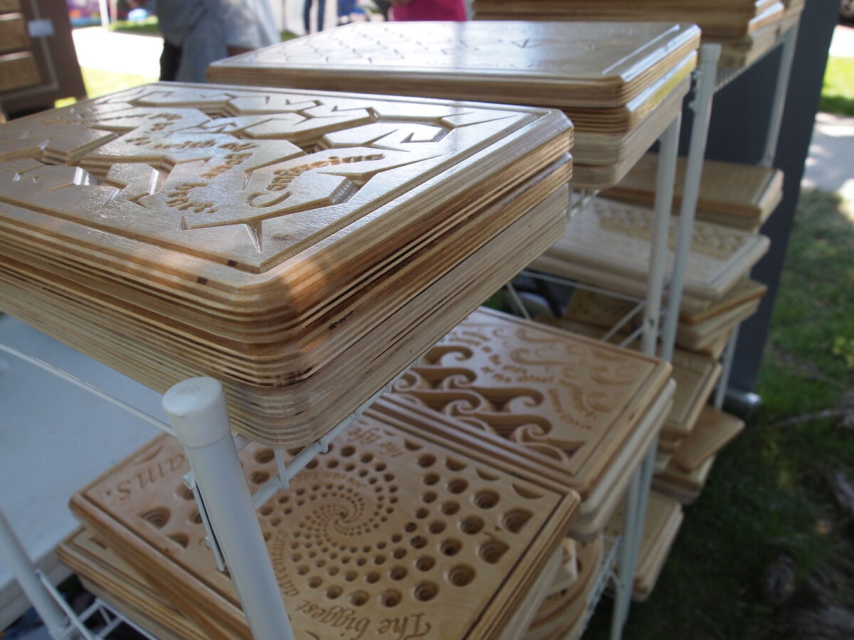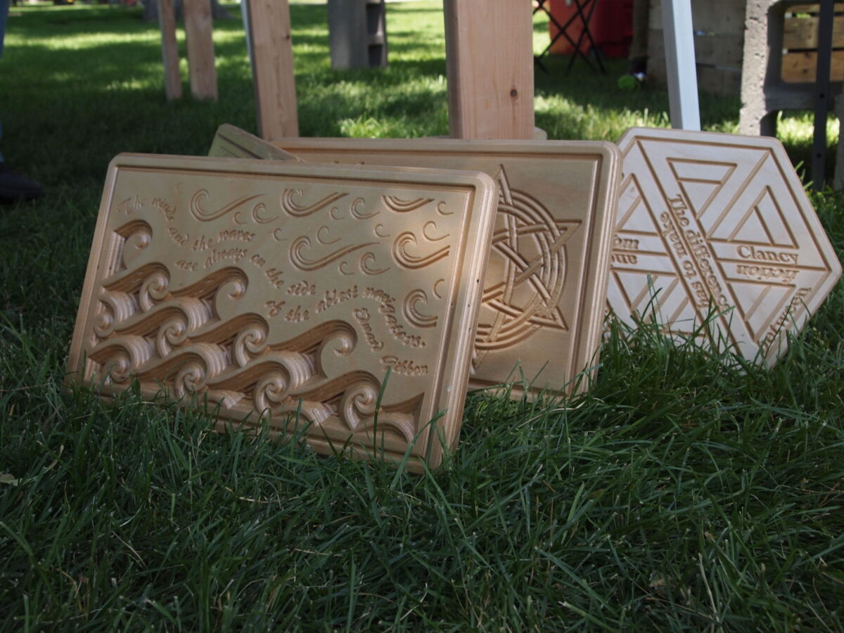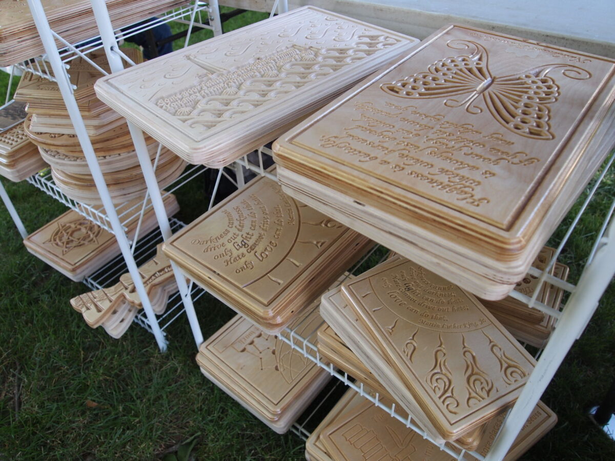 Hale has been testing products at the Provo Farmers Market for two weeks so far. He’s got a variety of inspirational, patriotic and religious saying carved in wood, and he’s testing the market to see what sells. His products, from intricately carved wood sculptures to the Computer Numerical Control, or CNC, etched plaques hung from the booth walls Saturday, have evolved over the years.