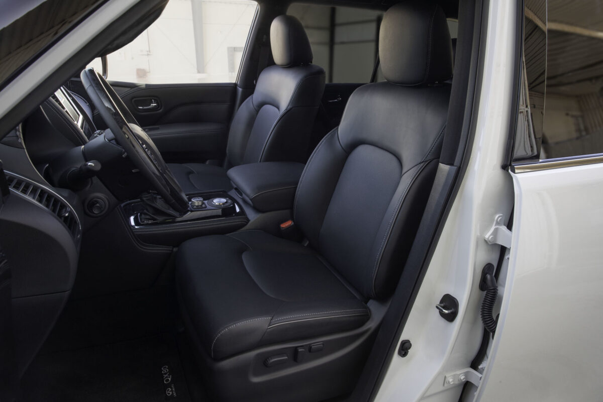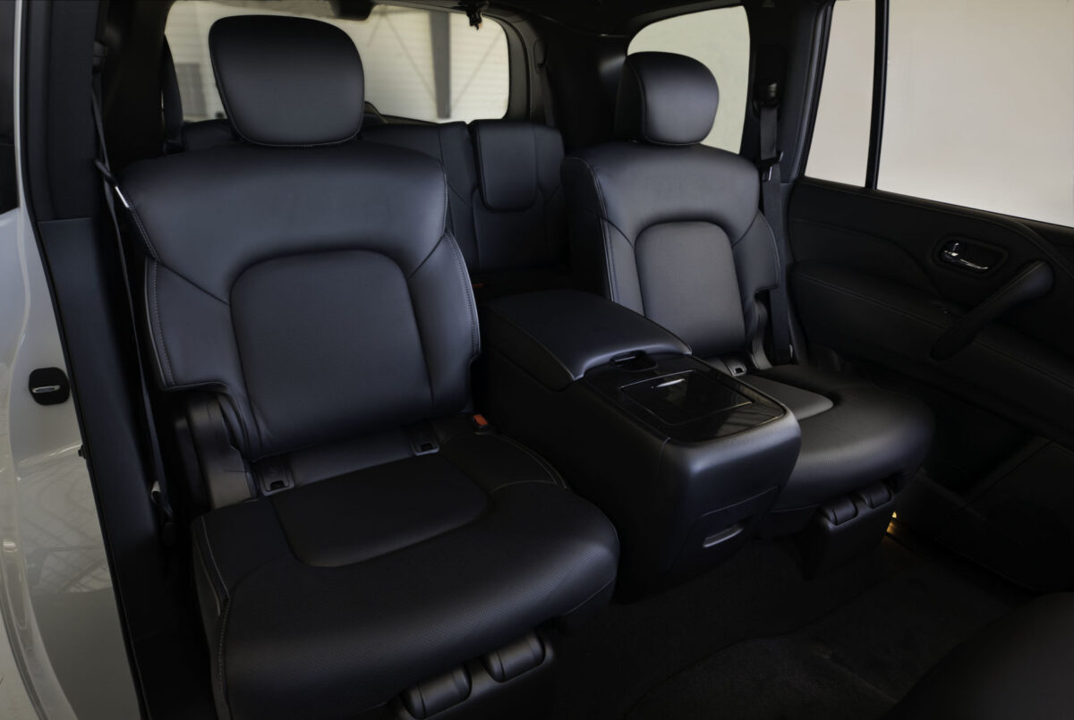 We would liken the interior of the QX80 unto a luxury jet liner, as the front two rows were plush quilted leather captain’s chairs. This does bring up the point that the Luxe set up this way will only seat a total of seven for the ride, with the second row being captain’s seating.