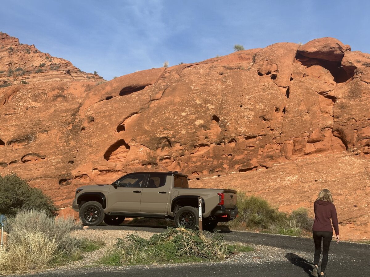 The Tacoma TRD Pro’s Mud Bath paint color seemed designed to blend perfectly with the stunning red rock landscapes of Southern Utah, where the truck felt right at home.