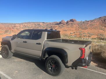 - The Tacoma TRD Pro’s Mud Bath paint color seemed designed to blend perfectly with the stunning red rock landscapes of Southern Utah, where the truck felt right at home.
