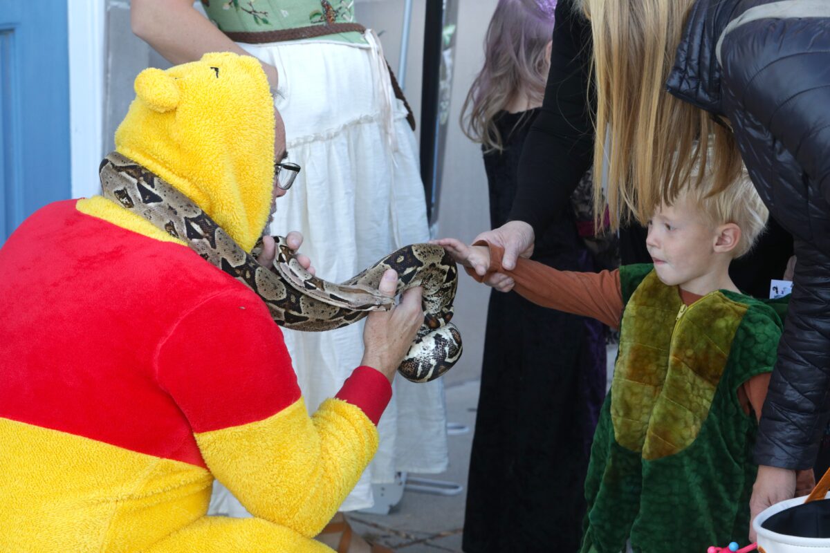 - A boy touches a snake while trick-or-treating on Springville Main Street Friday, Oct. 31, 2025.