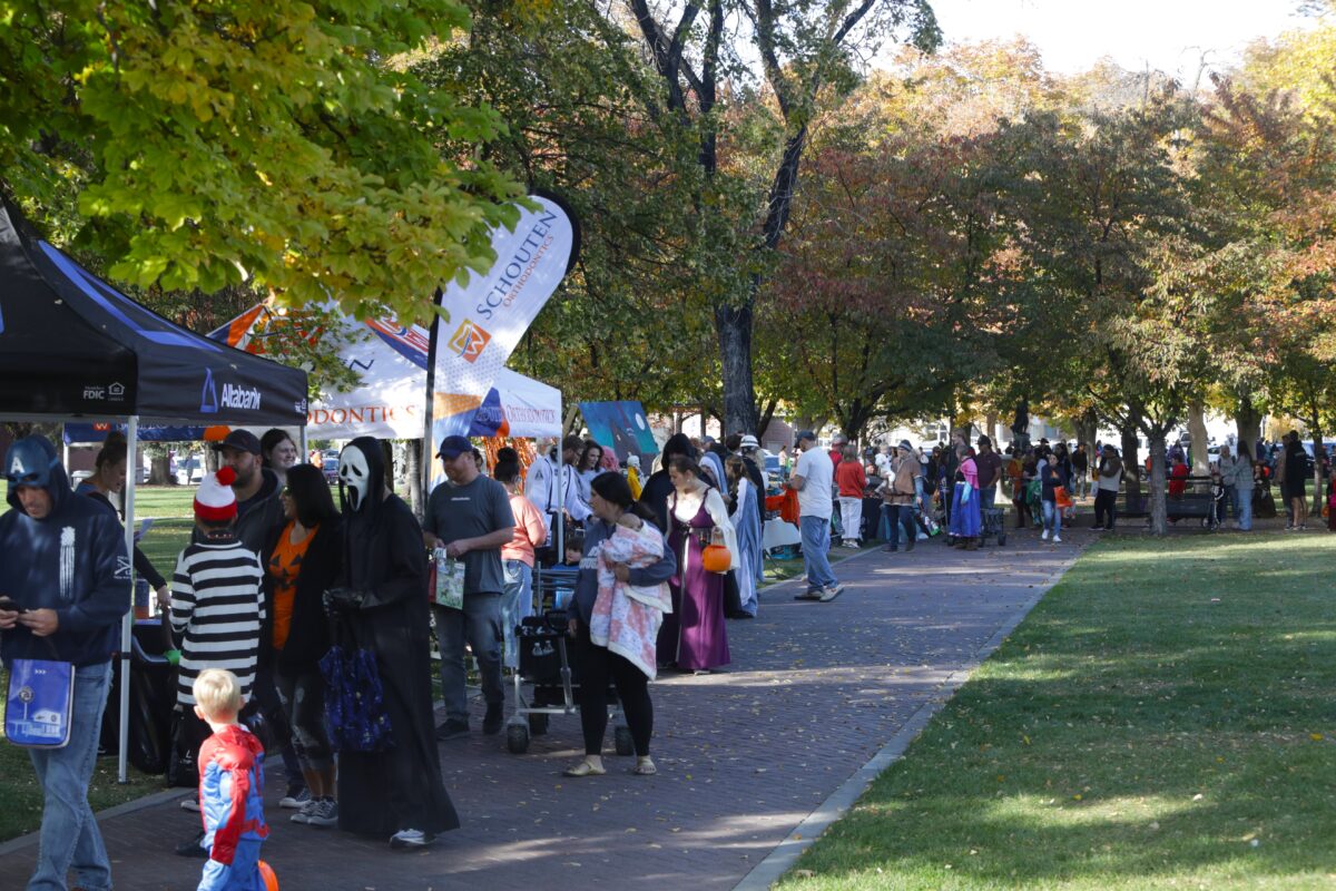 Businesses from other locations set up booths at Civic Center Park. A long line wrapped around the park of families waiting for candy, and the youth council worked with the police department to help people cross the street safely.