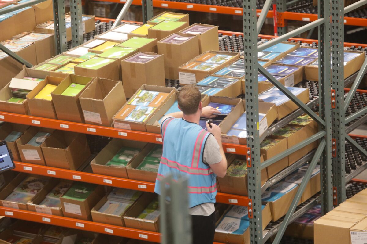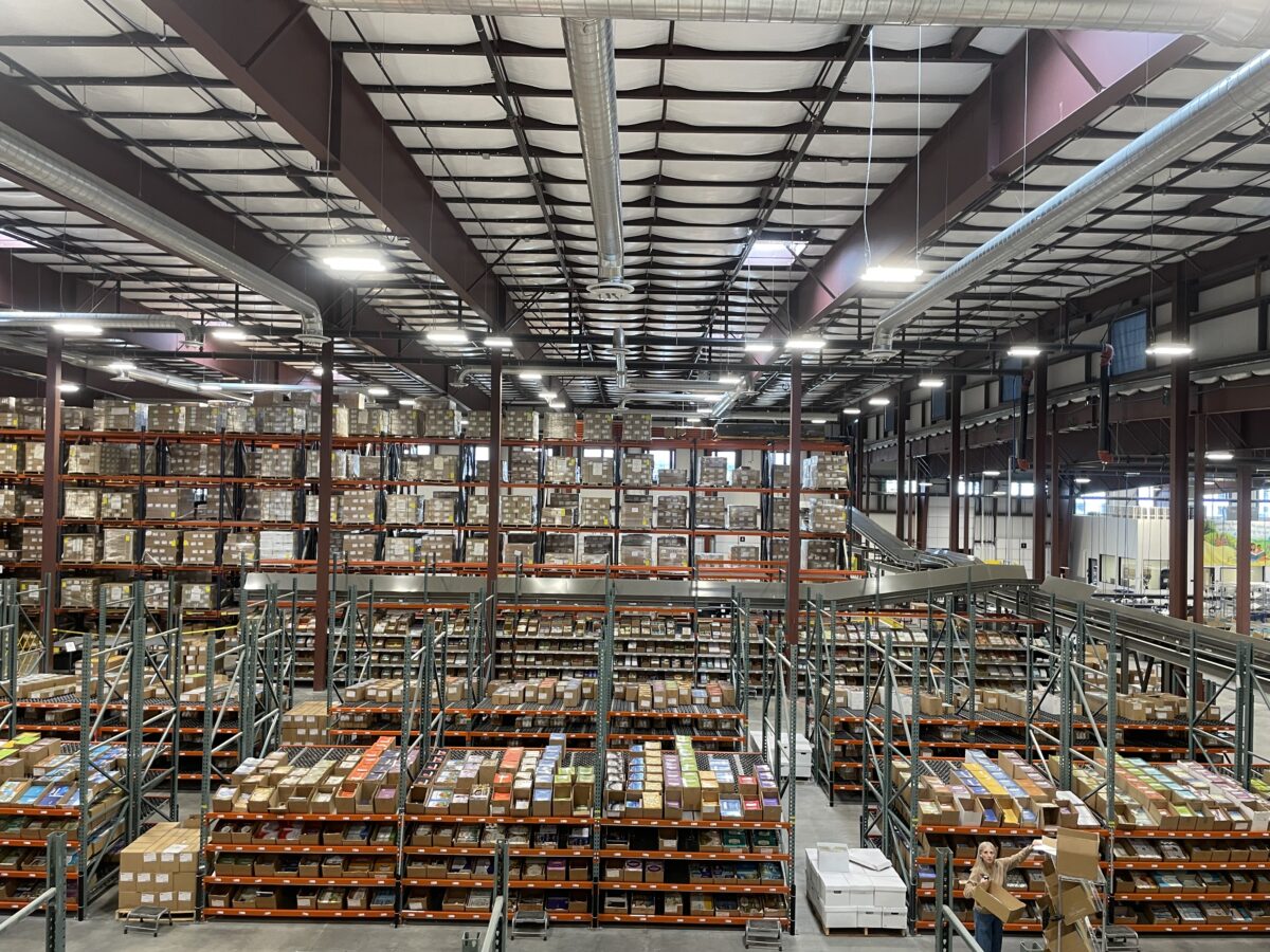 Tuesday afternoon was a typical day at The Good and the Beautiful’s new 100,000-square-foot warehouse in Lehi, with a handful of workers scattered about assembling boxes and packaging orders.