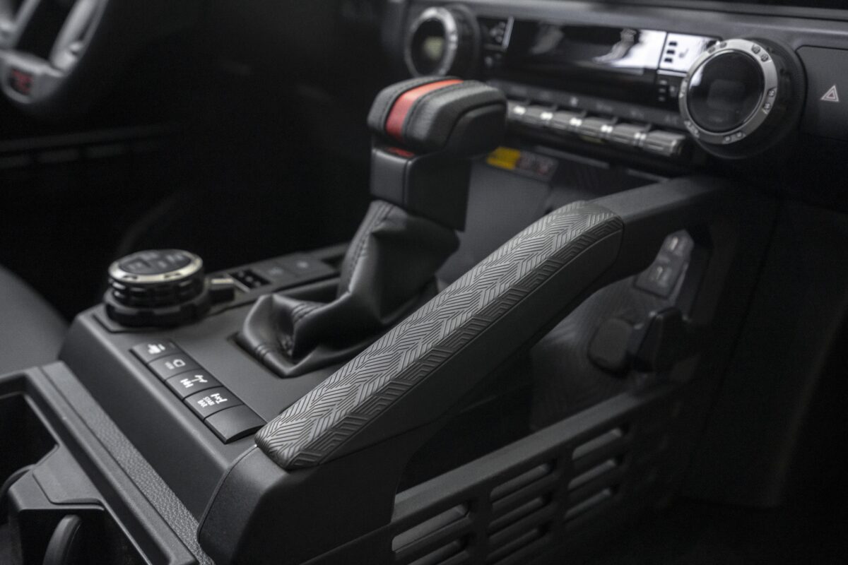 - The redesigned center console features a robust gear selector and a dedicated dial for the Multi-Terrain Select system. A heavy-duty grab handle with a topographical texture ensures passengers stay secure when the trail gets technical.