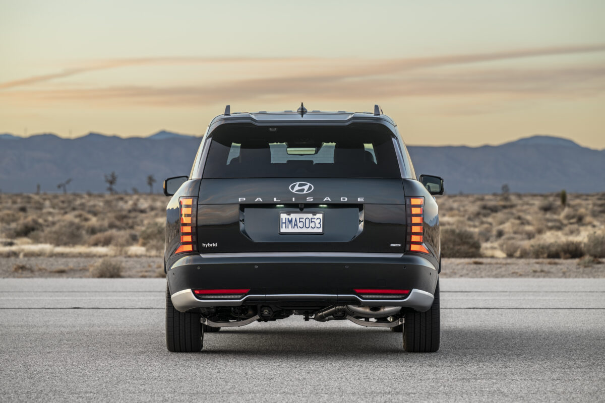 - A view from the rear highlights the clean lines and subtle “Hybrid” badging of the Calligraphy trim. On a highway trip from Utah Valley to Richfield, the Palisade proved its road-trip credentials, averaging an impressive 31.6 mpg.
