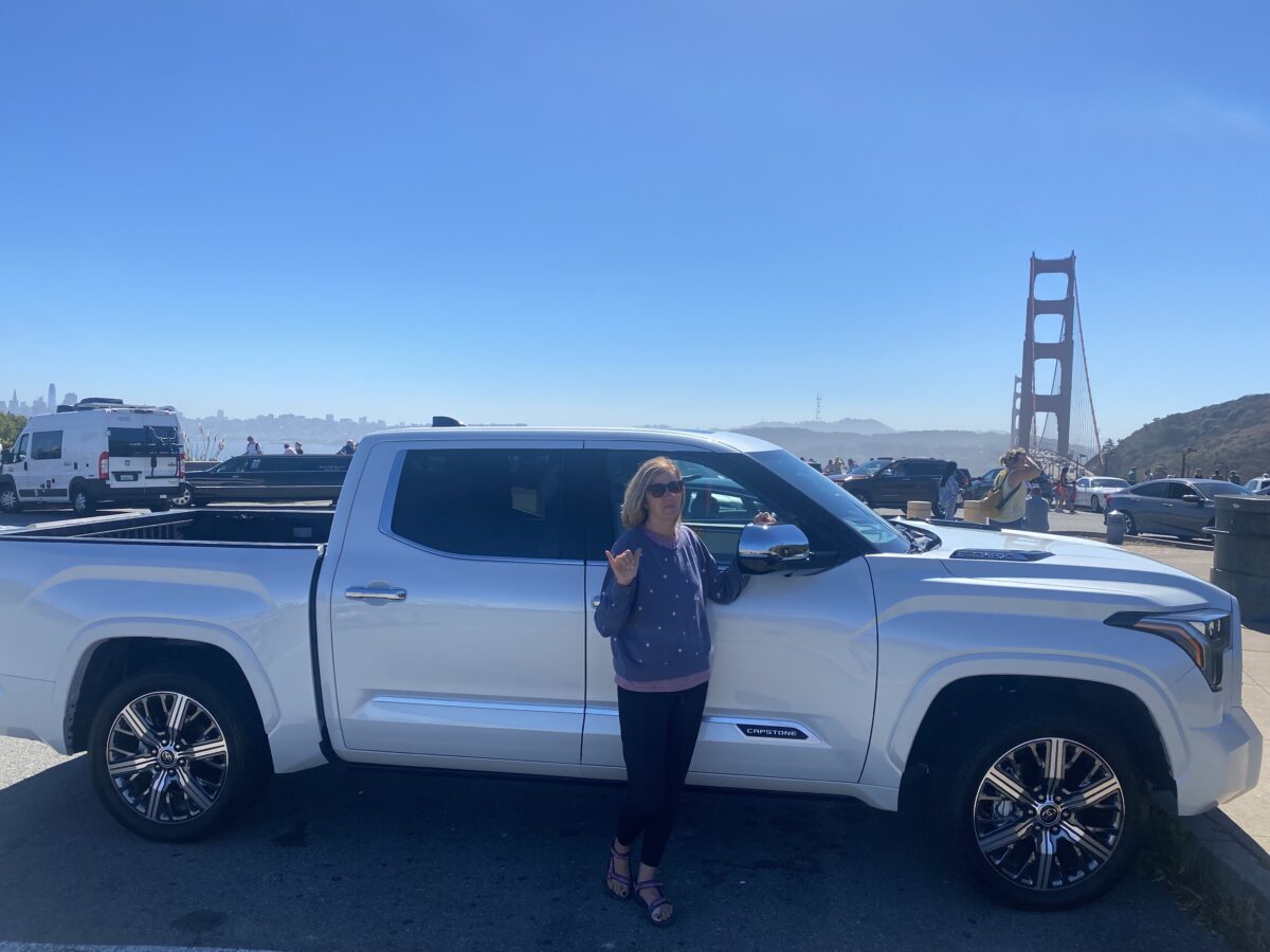 - Deanne with the new 2022 Toyota Tundra Capstone at the Golden Gate Bridge in San Francisco as we parked to walk across the bridge.