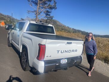 - Deanne and the 2022 Toyota Tundra at the top of the mountains before we headed down into Reno, Nevada, on our way home on our extended adventure with the Tundra.