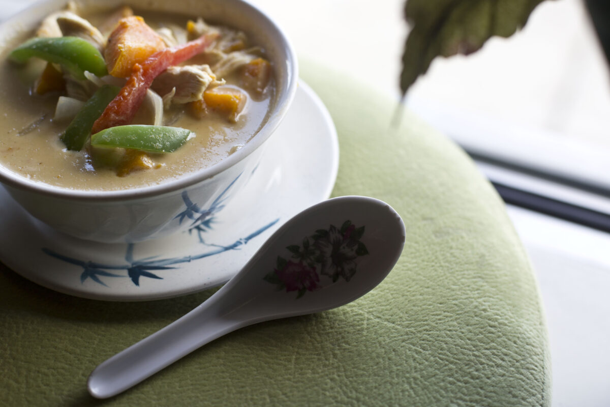 She wasn’t the only one who struggled. I nabbed some Satay Chicken, which is marinated in coconut milk, Thai herbs and soy sauce, grilled, placed on little wooden skewers, then served with peanut sauce. Leveraging my fork against the chicken, I tried to remove it from the skewer. This went poorly. It wasn’t coming off the skewer that easily and I used a little elbow grease. I miscalculated, and the chicken sailed off the skewer and down into a dark crevice where the bench, floor and wall met. The five-second rule seemed ill-advised here. Good news: My next attempt was successful. It’s a good thing, too, because the Satay Chicken was delectable, especially with the smooth yet potent peanut sauce. Food doesn’t belong on the floor, it belongs in the mouth. I realize this now.