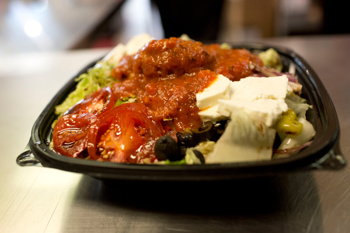 There are menus to your right as you walk into Moochie’s, so you can pick one up and immediately begin perusing your plentiful sub and salad options, which, along with meatballs of course, are the restaurant’s primary calling cards.