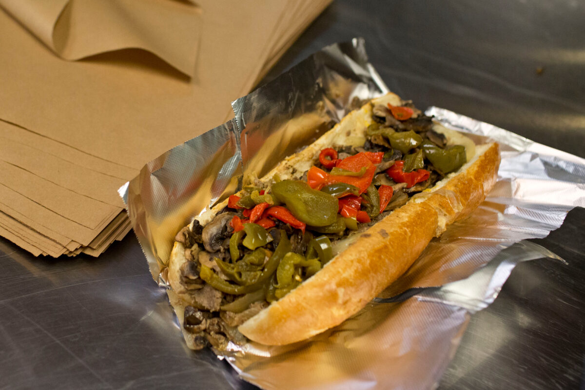 In addition to the steak, the fantastic sub came with grilled onions and American cheese. There are extra options available for add-ons (for 50 cents to a $1 each depending on the size of the sandwich), including grilled mushrooms, roasted bell peppers, a style of cheese substitution and lettuce, tomato and mayo as one item. We added mushrooms and bell peppers, and it made for one scrumptious sandwich, that’s for sure.
