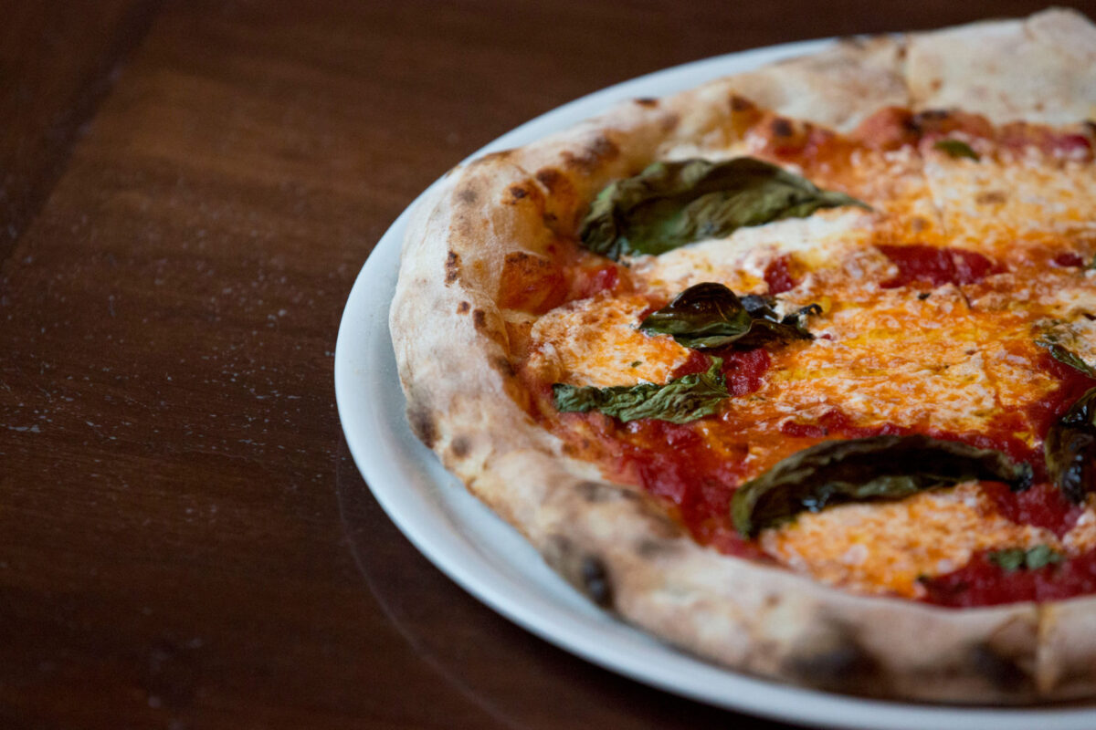 The pizza is in the neapolitan, thin-crust style — and is baked in a 712-degree (hence the restaurant’s name) wood-fired oven.