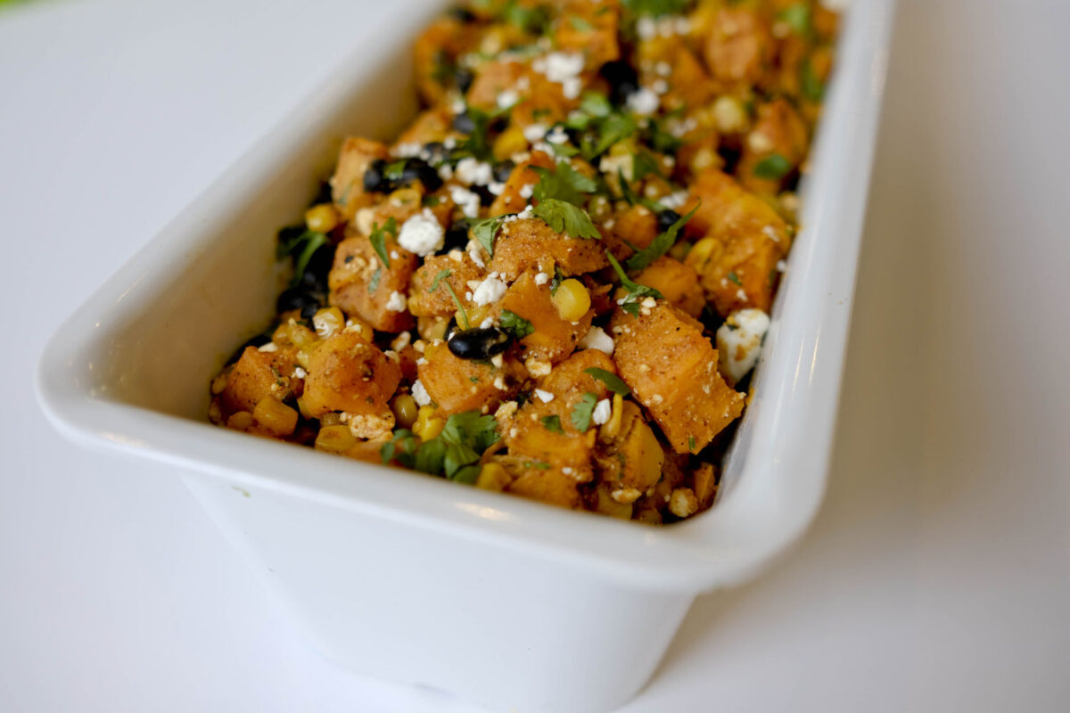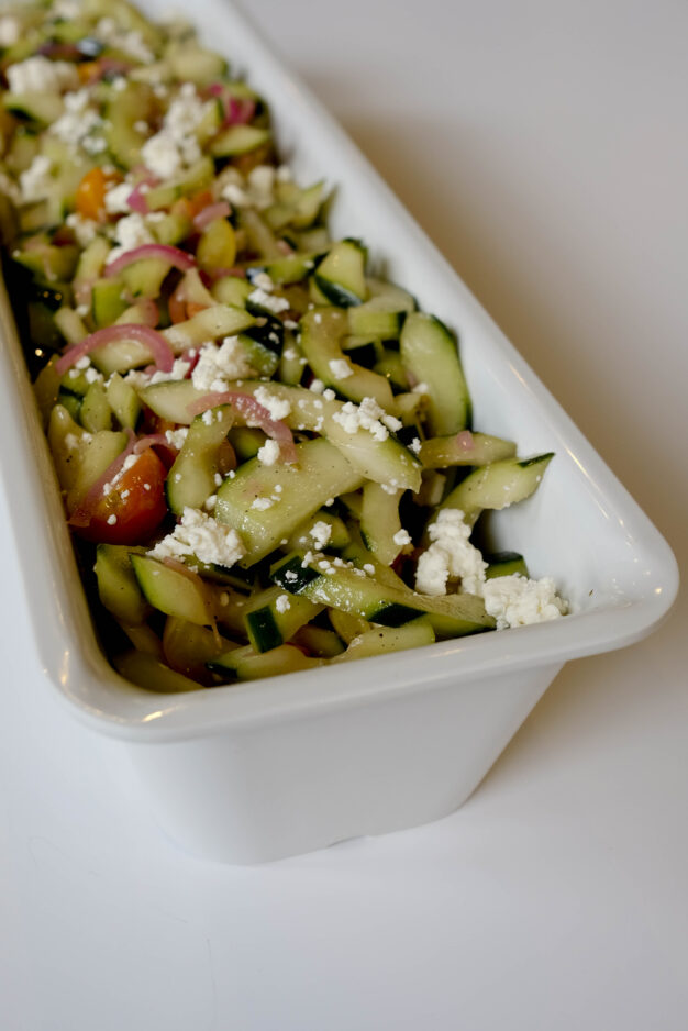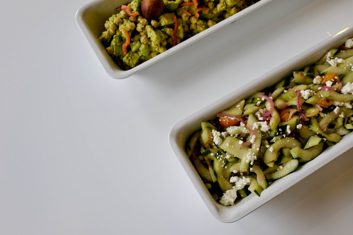 The menu, when you look at it, seems deceptively limited. For $12.50 you can order among four different “chef’s choices,” selected from a variety of “farmers market fresh” side items and hot vegetable dishes as well as “proteins.” Or you can go a la carte.