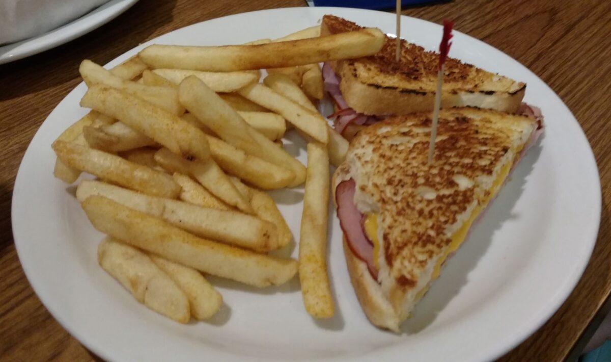 The first thing to make it back to our table was the Grilled Ham & Cheese ($3.99) with a hearty side of thicker cut, deliciously crispy French fries ($1.69). Though not my dish, I happily stole a few bites and couldn’t get past how the crispiness of the grilled bread combined with the melted cheese and warmed ham to create such a fantastic and cohesive flavor. Usually food that simple tastes simple, but it was one of my favorite parts of the meal.