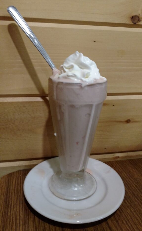 An “Old-Fashioned Desserts” menu was also on our table, featuring cones, a variety of awesomely named ice cream and soda floats, shakes, freezes, malts and from-scratch brownies.