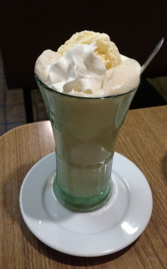 The Purple Cow (bonus points for an awesome name) is in all reality a grape soda float with fresh scooped vanilla ice cream, and definitely carried with it a pop of flavor that we enjoyed until the finish. The real winner, though, was the Boston Crème Cooler – a cream soda float with vanilla ice cream that took sweetness to the next level in a way that wasn’t at all overwhelming. I’d actually never used cream soda in a float before, and now I’m wondering why not!