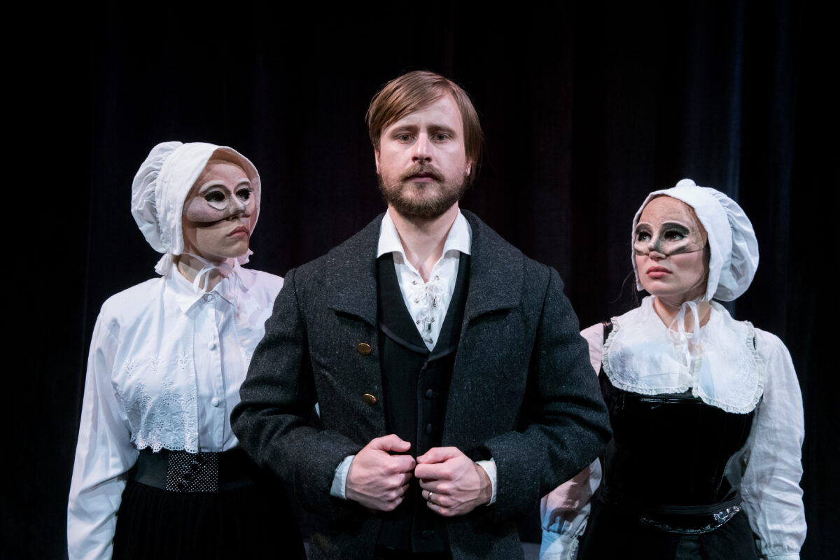 Arthur Miller’s classic play “The Crucible” was always about masks of identity in a highly religious community, but a production opening this week at Brigham Young University — itself a religious community of sorts — explores that concept literally: The actors use and remove physical masks throughout the show to signify fear-based public personas versus authenticity.