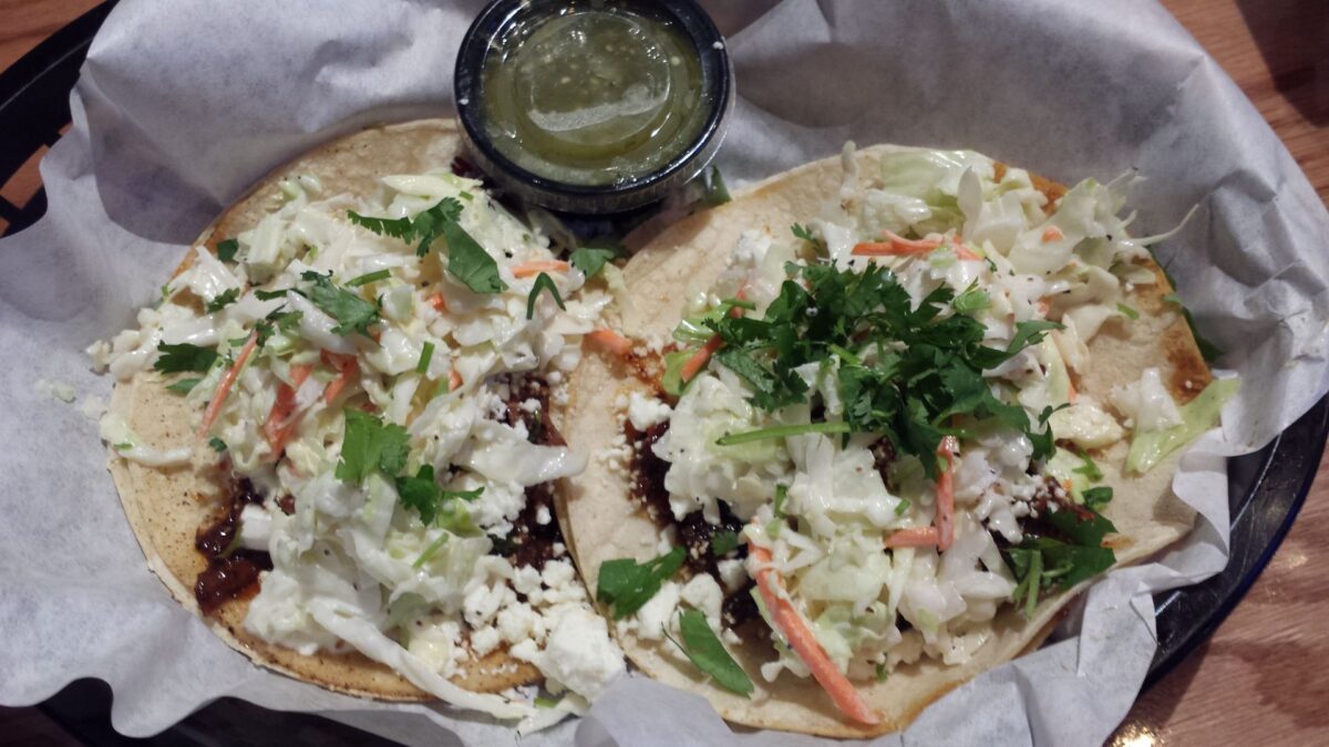 On to the food. Kudos go to the young man at the counter, because my favorite item on this night turned out to be the Brisket Tacos. A combination of sweet, tender brisket, feta cheese, coleslaw, cilantro and a house sauce, on a pair of doubled-up corn tortillas — the tacos were indeed fantastic.