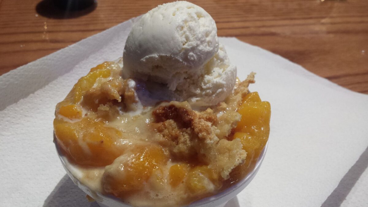 We topped everything off by sharing some Peach Cobbler with a scoop of vanilla ice cream for dessert. The mixture of warm cobbler and cool ice cream was melt-in-your-mouth heaven and a perfect close to the evening.