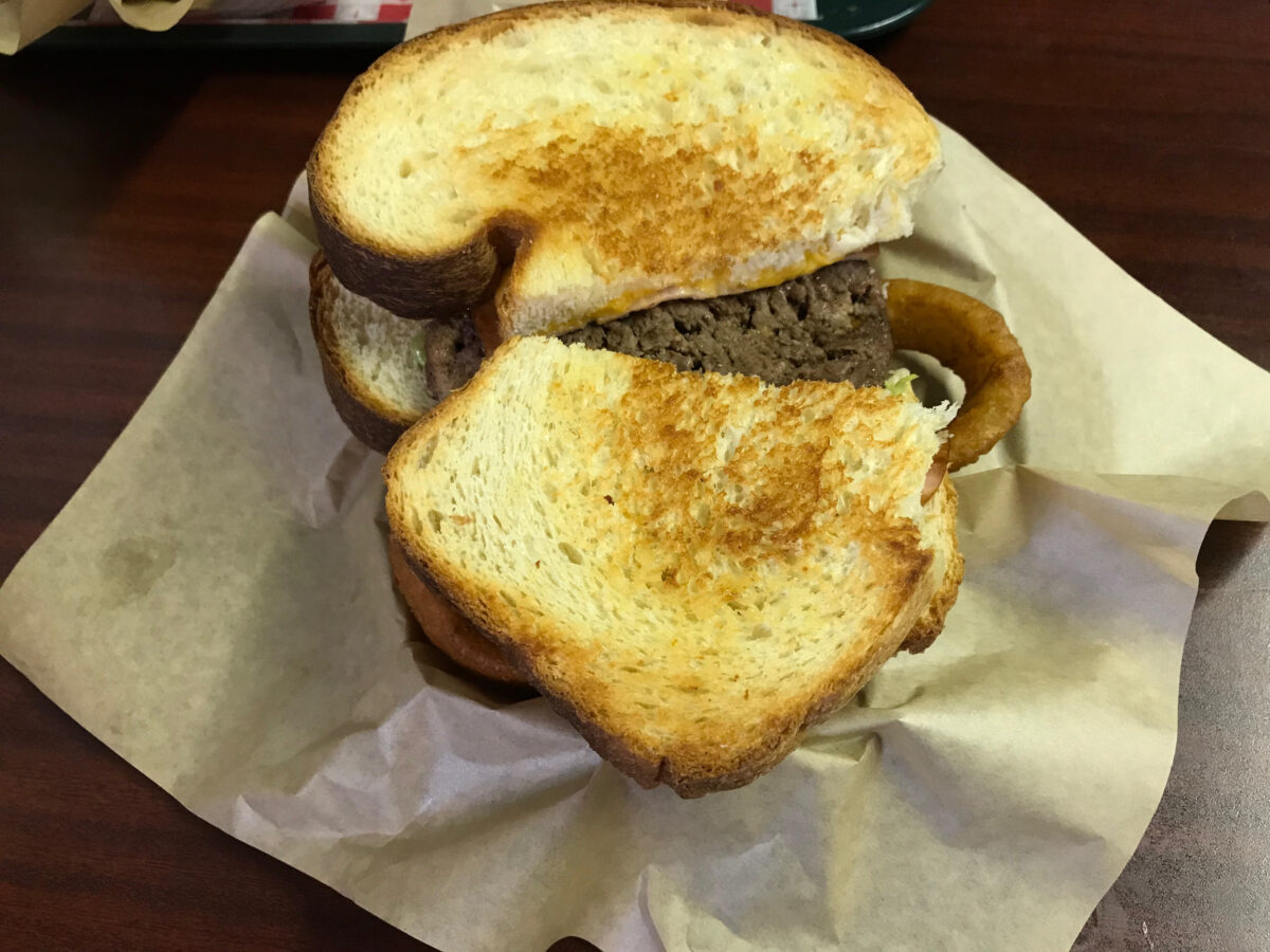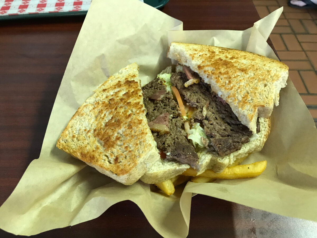 The Shadow Fighter is a signature sandwich and one of the main things the Little Acorn is known for. It features a hamburger patty, ham, onions, pickles, tomato, lettuce, cheese and a special sauce all on sliced homemade sandwich bread. Definitely a worthy order.