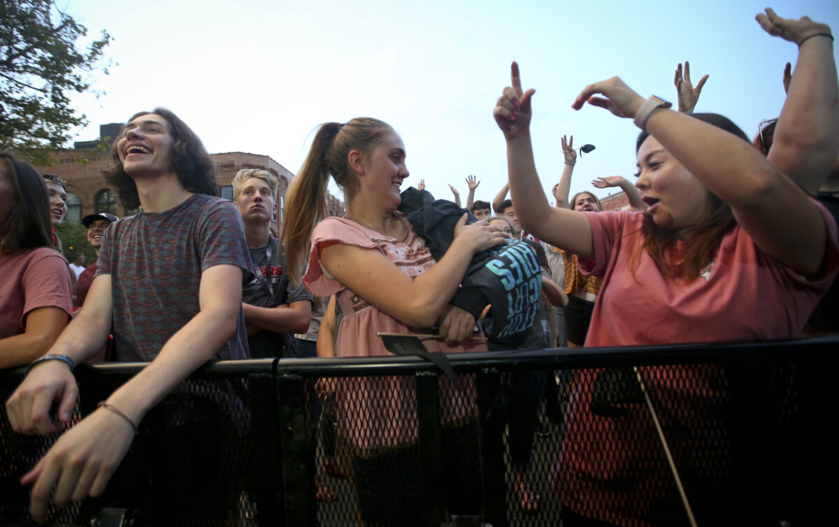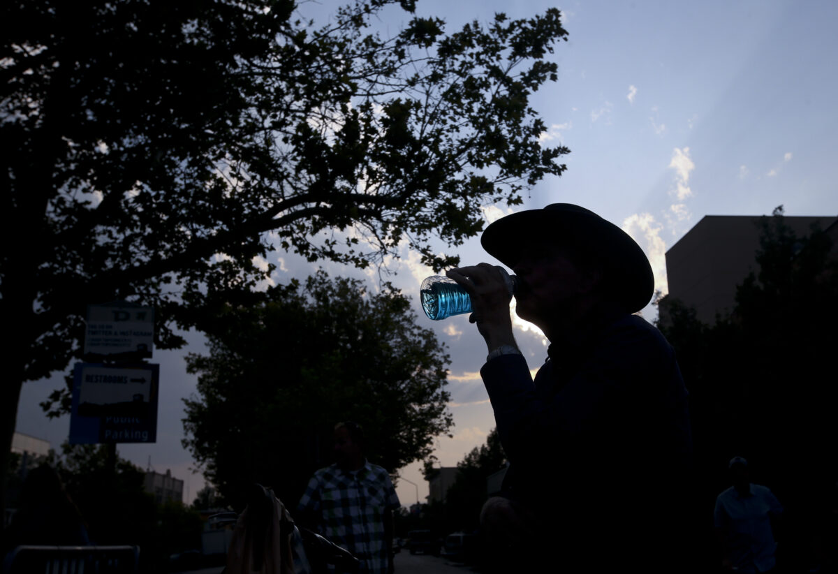 James Breme, of East Mesa, Arizona, but rents a home in Utah during the summer, takes a drink before the Rooftop Concert Series' battle-of-the-bands style show Friday, Aug. 3, 2018, in downtown Provo. Local band Lantern by Sea took to the stage before Provo bands Noble Bodies and Pinguin Mofex faced off. Isaac Hale, Daily Herald