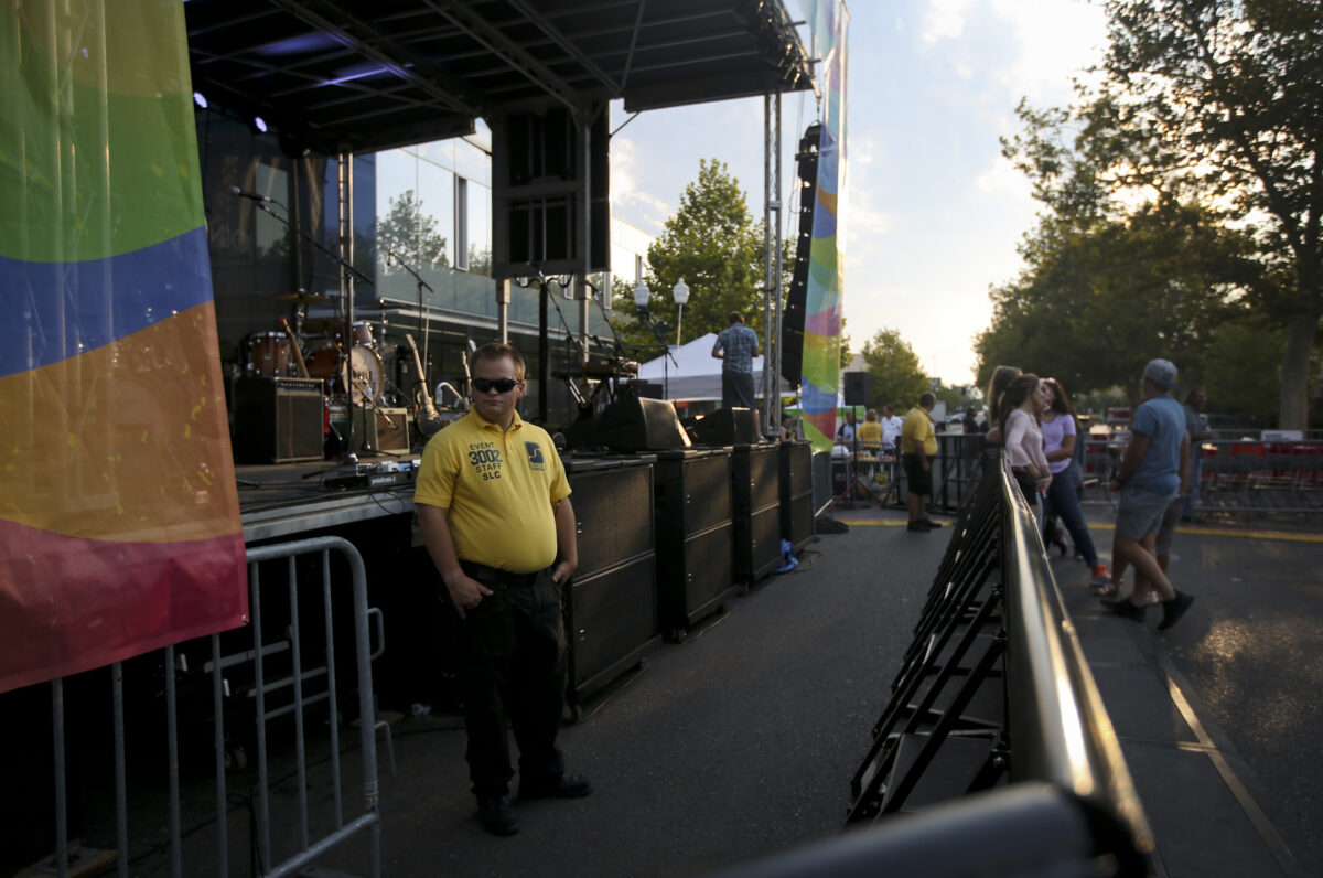 An event staff member looks about from the pit before the Rooftop Concert Series' battle-of-the-bands style show Friday, Aug. 3, 2018, in downtown Provo. Local band Lantern by Sea took to the stage before Provo bands Noble Bodies and Pinguin Mofex faced off. Isaac Hale, Daily Herald