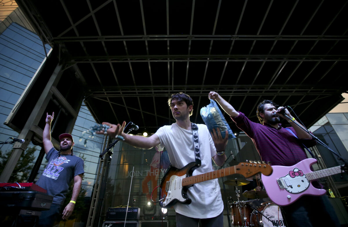 Pingiun Mofex performs in boxing warmups during the Rooftop Concert Series' battle-of-the-bands style show Friday, Aug. 3, 2018, in downtown Provo. Local band Lantern by Sea took to the stage before Provo bands Noble Bodies and Pinguin Mofex faced off. Isaac Hale, Daily Herald
