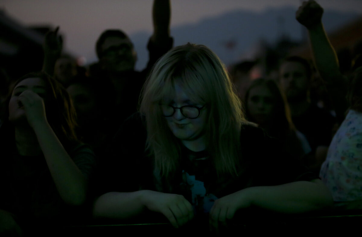 Hailey Corbett, of Provo, listens to Noble Bodies perform during the Rooftop Concert Series' battle-of-the-bands style show Friday, Aug. 3, 2018, in downtown Provo. Local band Lantern by Sea took to the stage before Provo bands Noble Bodies and Pinguin Mofex faced off. Isaac Hale, Daily Herald