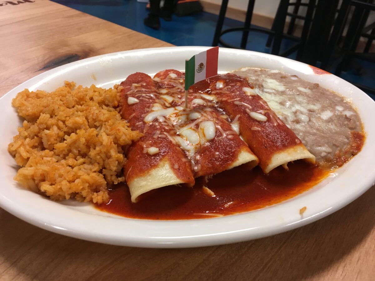 The restaurant didn’t seem extraordinarily packed the night we visited, but we ended up waiting about an hour to get our food. Included in our order were three Mexican classics — a smothered burrito, chicken enchiladas and beef sopes — which came out first.