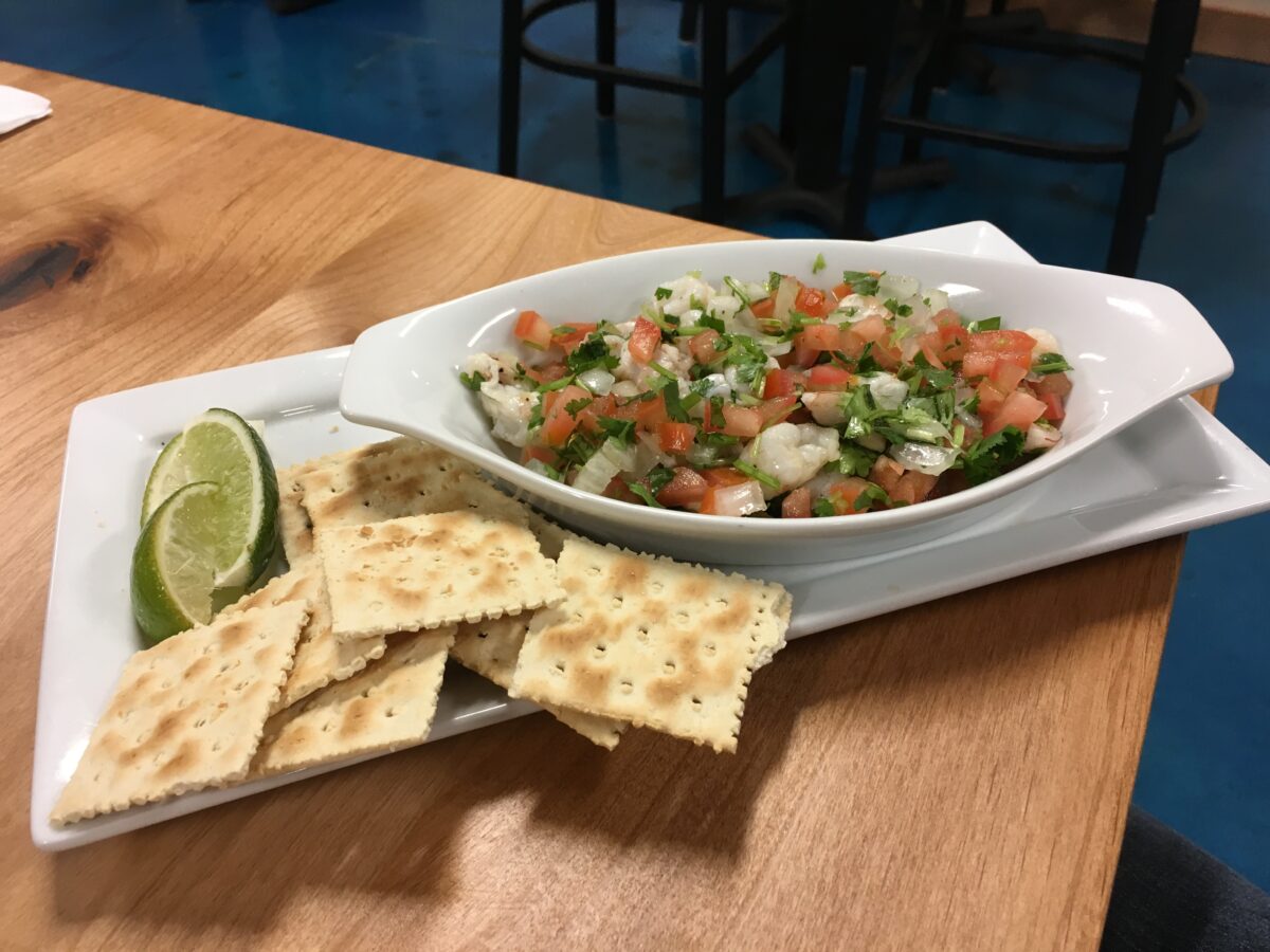 When made right, this classic blend of shrimp, tomatoes, onions and cilantro bathed in lemon or lime juice and served atop a crispy tostada comes together in a mouthwatering symphony of flavor that makes this dish one of my favorite things to eat. What I was served at long last was not what I expected: a small dish of dry ingredients with a side of three lime slices and soda crackers.