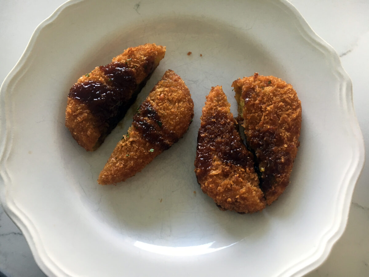 The Curry Croquette was perhaps the most unique out of the ones we tried: fried, flavored curry potato drizzled with a sweet sauce. The spice flavors are spot on for Japanese curry — which is different than an Indian or Thai curry, but equally delicious.