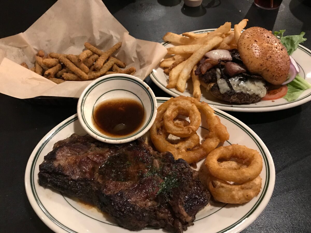 There are a variety of sides, and you get a pair with most entrees, so we were able to try several options. One of my favorite items was the Fried Green Beans, which were battered. I enjoyed them, even to the point where you didn’t really recognize you were eating green beans — which I like anyway. I prefer onion rings that are slightly crunchy, but these were good even though they were somewhat soggy. The beer-battered fries and mashed potatoes were also well received.