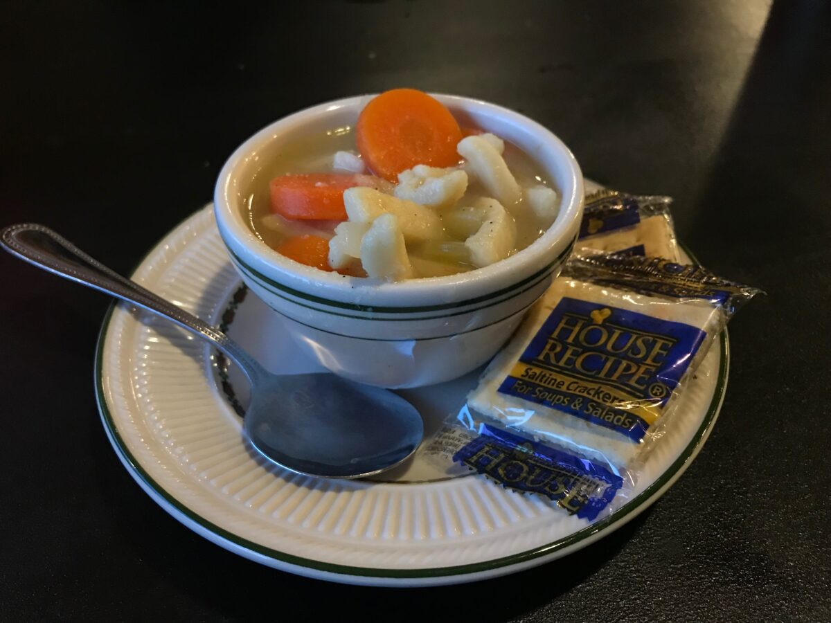 It took nearly 25 minutes for the main portion of our food to start arriving, but we didn’t mind. A cup of Chicken Noodle Soup arrived first, and it offered noodles that were so smooth they almost melted in your mouth, carrot and celery slices and a savory broth.