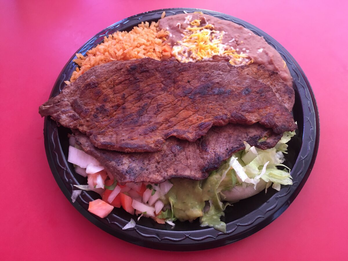 My Carne Asada Plate was served with two large, warm homemade tortillas and small servings of pico de gallo, guacamole and lettuce. The meat on its own, though well-seasoned, was a little dry, tough and hard to cut, but tasted amazing combined with the other elements on the plate inside the soft, tasty tortillas.