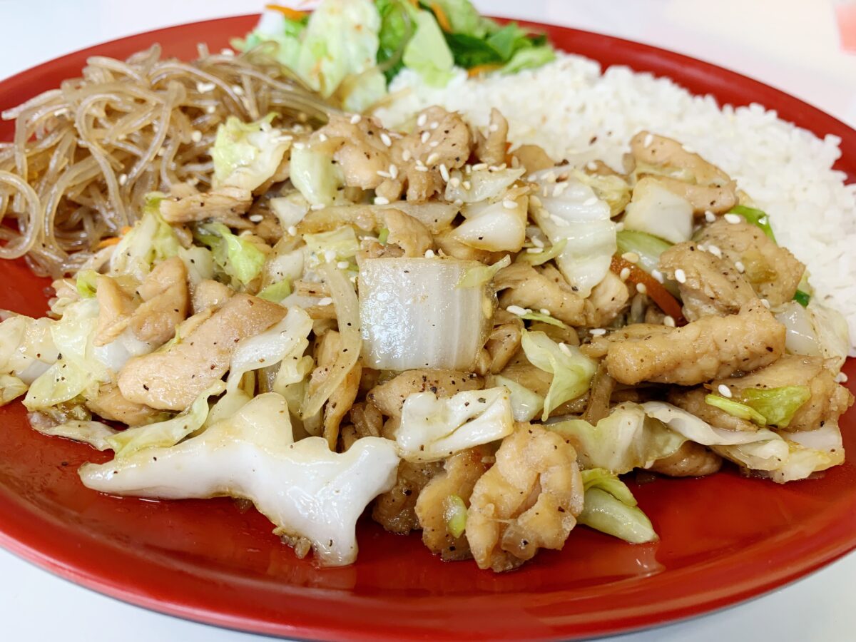 My wife’s spicy chicken certainly lived up to its name. My wife is a sucker for spicy food, and even this was clearing out her sinuses. But the smack of spicy was not without flavor, and combined with the noodles, rice and salad, she had quite the indulgent feast.