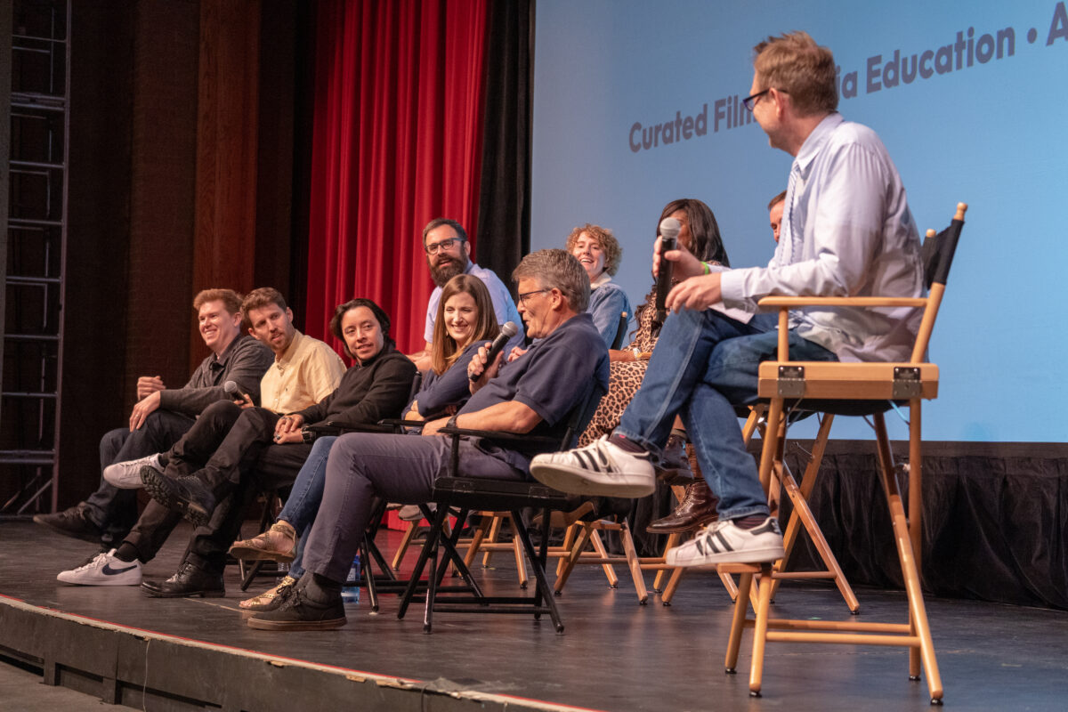 Moderator Chris Provost speaks during a Q&A at the Utah Film Center's "Napoleon Dynamite" 15th anniversary screening with cast and crew at East High School in Salt Lake City on Friday, May 3, 2019.