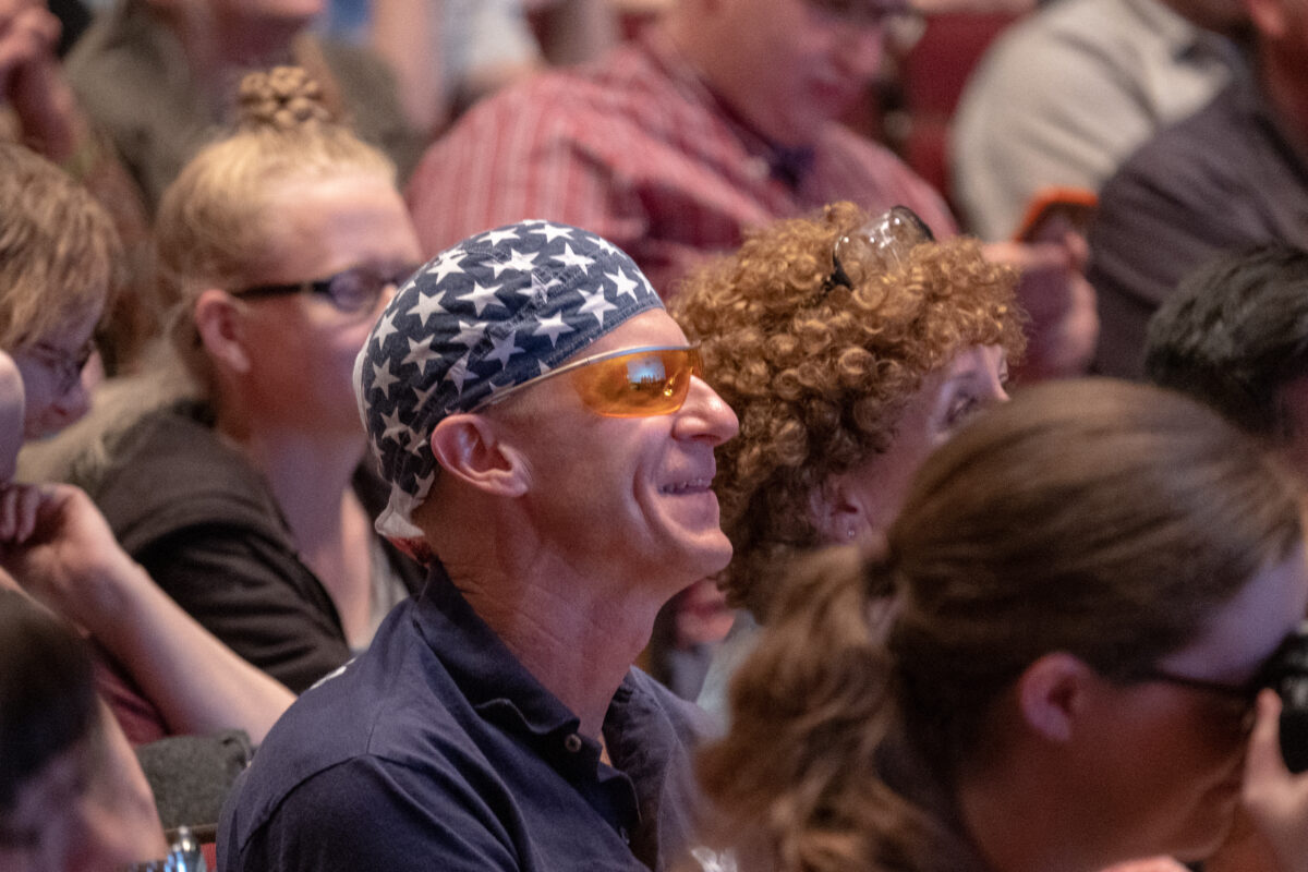 Audience members dressed in "Vote for Pedro" T-shirts participate in a Q&A at the Utah Film Center's "Napoleon Dynamite" 15th anniversary screening with cast and crew at East High School in Salt Lake City on Friday, May 3, 2019.