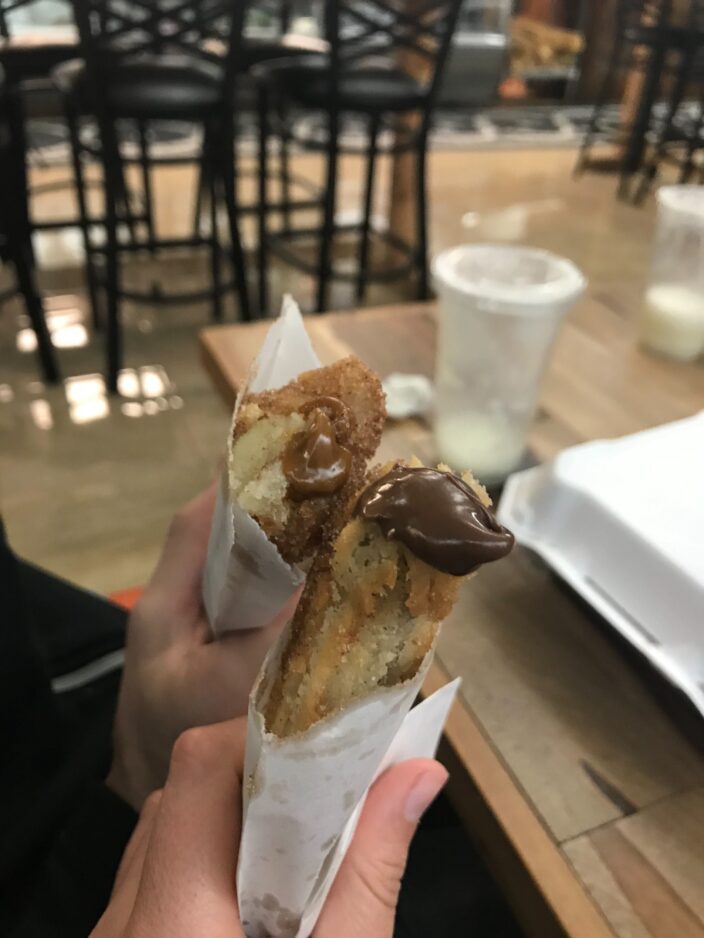 Although we felt extremely full, we were determined to try dessert. After all, Samba Breeze is also a bakery with tons of delicious-looking sweets on display. Despite the many choices, we ended up getting churros filled with dulce de leche and nutella — and here’s where I want to talk about service.
