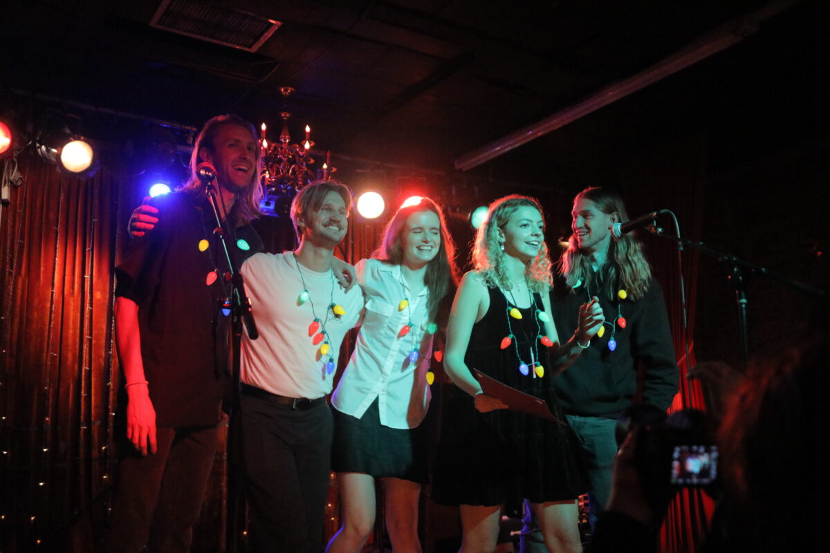 No matter how many of those text recipients actually showed up on Saturday, Beeson came out on top, winning a prize package that included Velour passes, gift cards to local eateries and stores, the famed “Stocking-o-cash” and, most importantly, a series of rewards to help take the group into the next level of their careers.